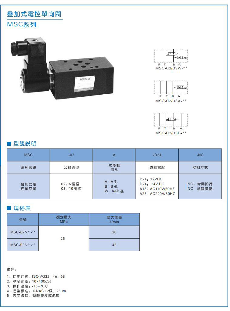 MSC系列叠加式电控单向阀